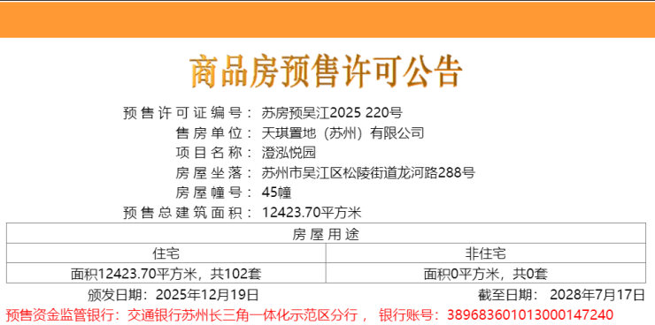 在相隔了一年多的时候,吴江太湖新城板块的天健泓悦府最新一批次房源取证了!