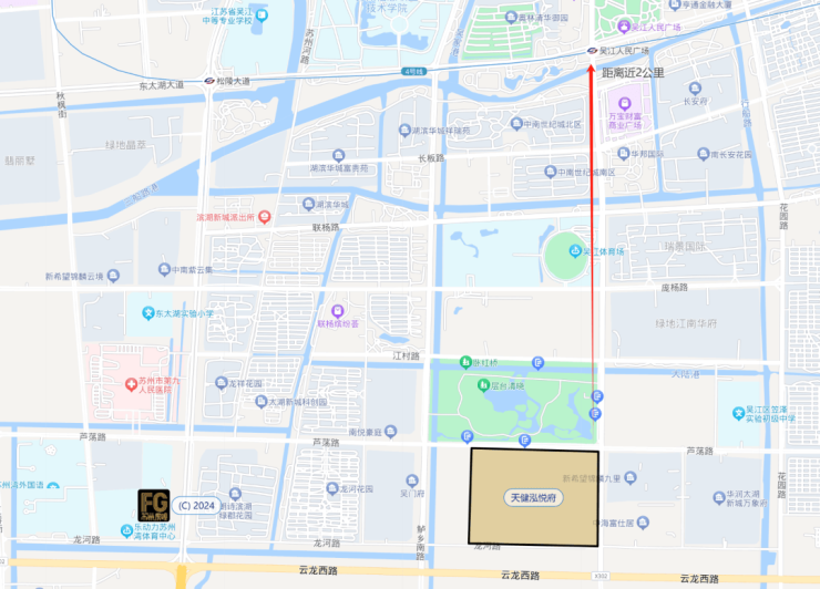 天健泓悦府位于吴江东太湖度假区(太湖新城)龙河路北侧、中山南路西侧 。项目地处苏州湾十字中轴,占位板块核心,尽享繁华配套。