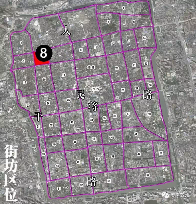 5、地块⑧地块边界线结合打铁弄、五峰园弄、阊门内下塘现状道路线型、中市河现状河道线型以及相邻地块实际边界线等进行相应调整;
