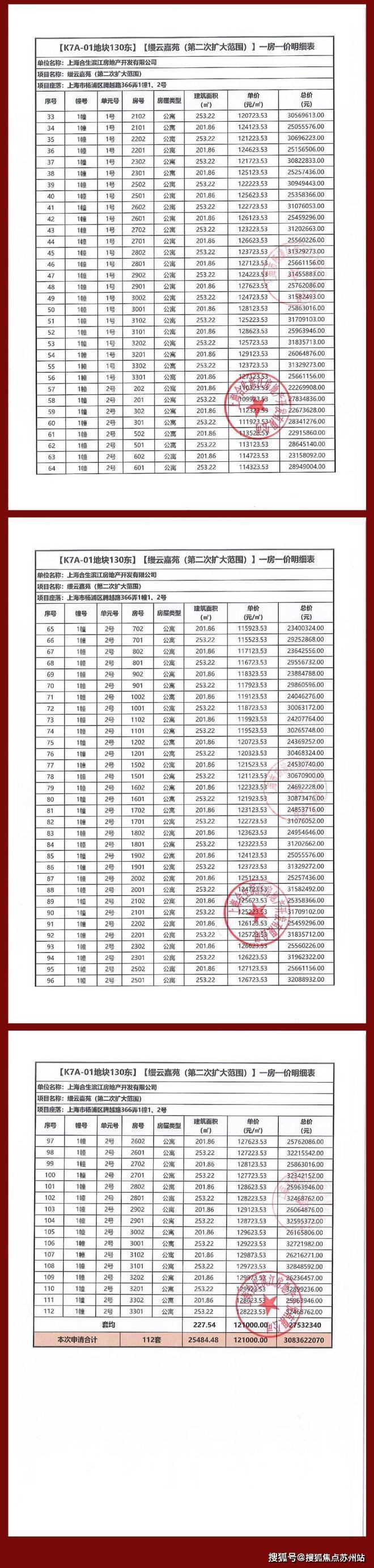 推售建面约201-253㎡奢阔大平层均价约12.1万/㎡,推售房源112套