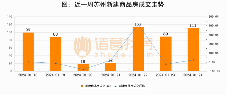 【苏州成交日报】01月24日新房成交111套、二手房264套;涨价房源137套