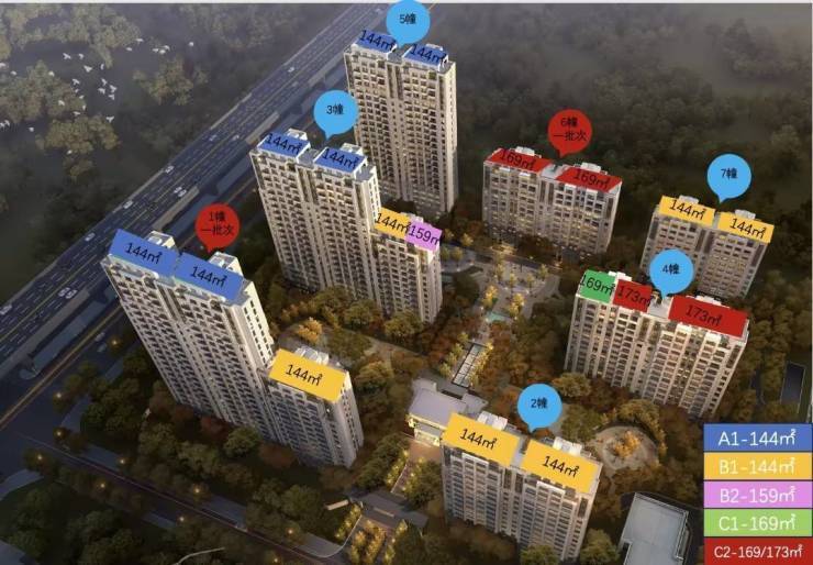 主力户型:144㎡三房(总价约290万/套)、173㎡四房(总价约340-355万/套)