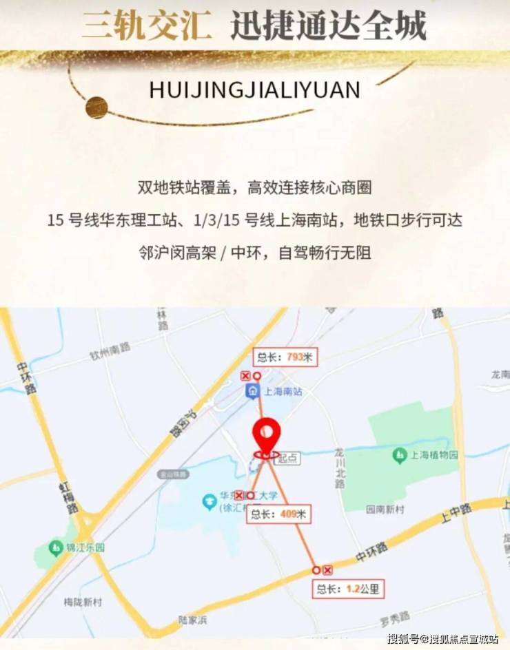 * **三轨交汇的核心优势**:小区最大的核心竞争力在于轨道交通。步行约300米可达地铁15号线华东理工大学站,步行约900米可达上海南站(1、3、15号线三线换乘)。这对依赖地铁通勤的上班族是巨大的吸引力。