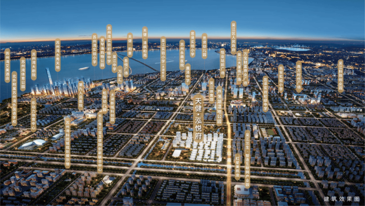 天健泓悦府位于吴江东太湖度假区(太湖新城)龙河路北侧、中山南路西侧 。项目地处苏州湾十字中轴,占位板块核心,尽享繁华配套。