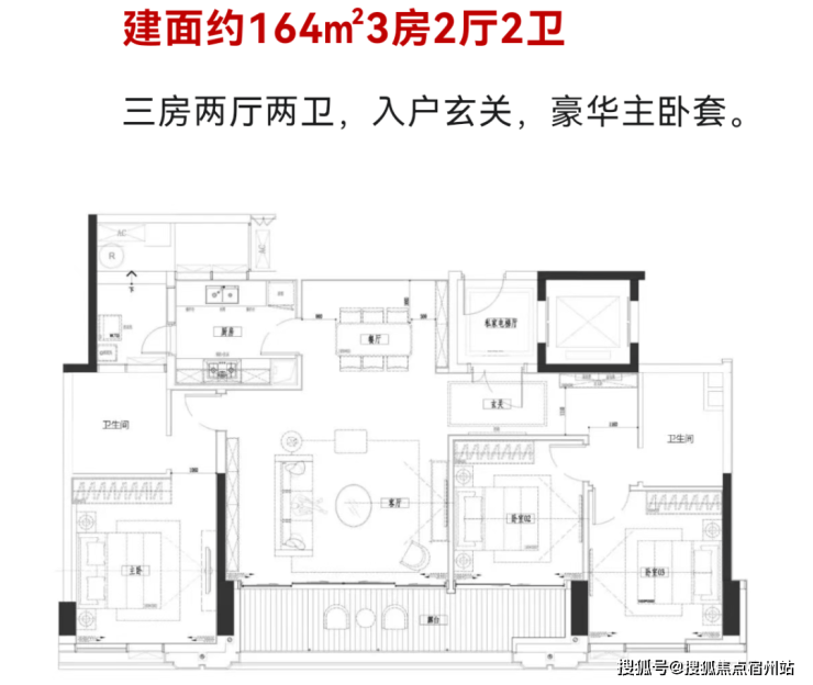 建面约166-213㎡三房(共103套):方正通透,南向四开间采光,LDK一体化设计(客厅、餐厅、厨房贯通),配备中西双厨(中厨+西式岛台),满足三代同堂的舒适需求与社交宴请的体面。