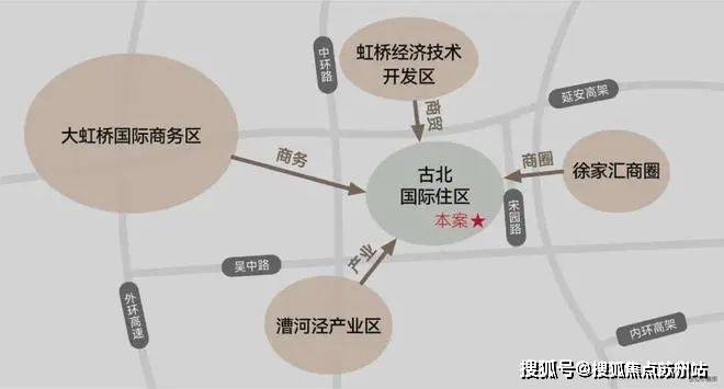 古北地处内中环间,古北路与吴中路构筑起黄金十字轴,东西串联大虹桥与徐家汇,南北对接虹桥经开区与漕河泾产业区。古北恰好位于这些商贸、产业区的“核芯”节点,四周皆为强邻,地理位置可谓得天独厚。