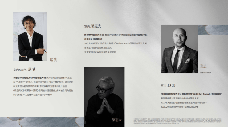 2)全是大师设计 请来了国际级的设计天团:建筑是水石,景观是观己,室内设计更是梁志天、琚宾、郑忠、CCD等大咖联手,品质感直接拉满。