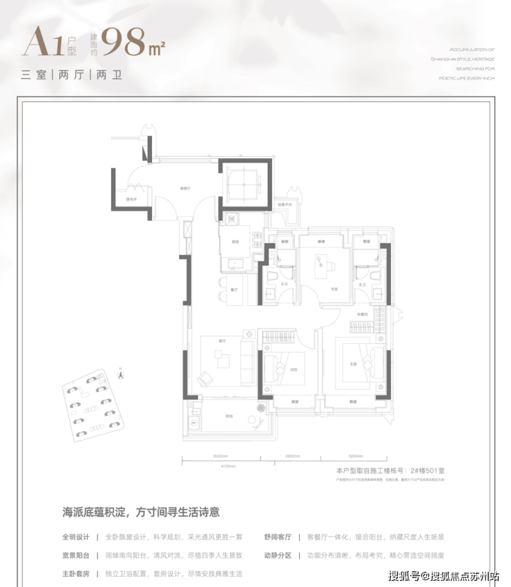 浦东川沙华润观宸润府售楼处电话:400-9966-224【预约热线】在空间布局和尺度感上,也更为合理,居住体验感更优!建面约98㎡的3房2卫,属于市面上非常经典的一款户型。