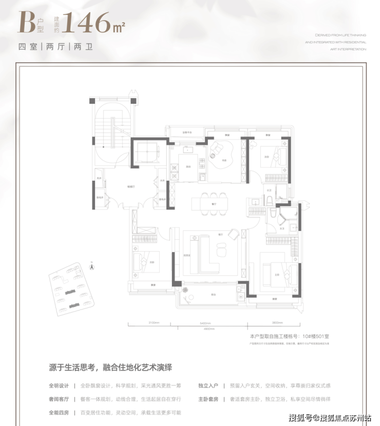 浦东川沙华润观宸润府售楼处电话:400-9966-224【预约热线】我们再来看一下建面约146㎡的4房: