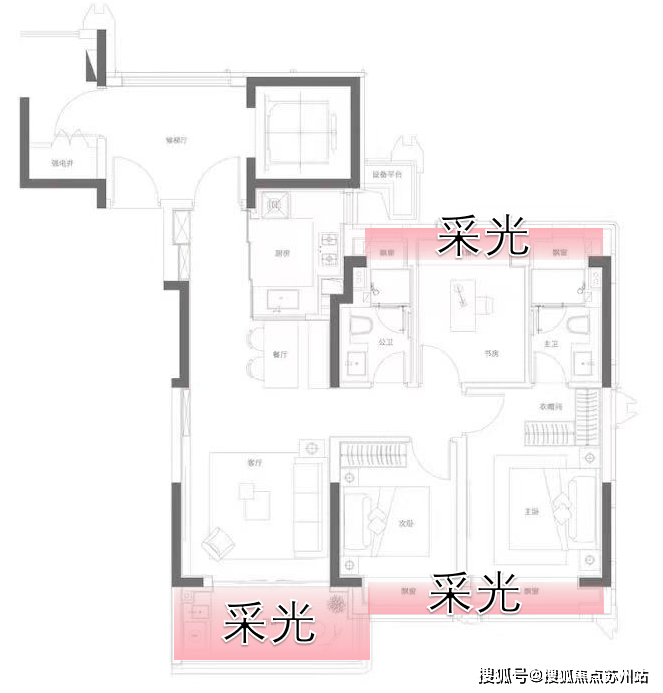 有别于市面上的同类其他楼盘,「观宸润府」在所有户型设计上至少为三开间朝南,这对于任何家庭结构的购房者来说,都能享受到更好的采光、通风、视野。