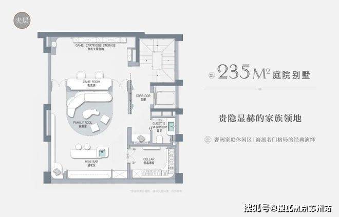 以建面约235㎡的庭院别墅样板房为例,户型 附赠地下室、庭院、露台、阁楼空间,附赠面积达到户型总建面的60%左右,市场上少之又少!