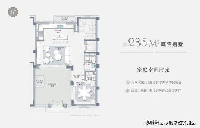 一楼独立客厅、餐厅,彰显世家大族的生活礼序;有天有地的独立庭院,是孩子的游乐场,可以遛狗撒欢,可以莳花弄草,也可以品味春花、秋月、夏风、冬雪。