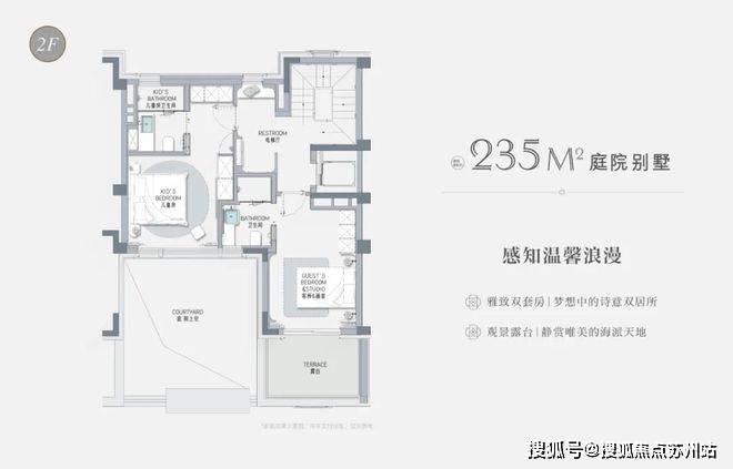 建面185、235、305㎡的风貌别墅, 包含联排、叠加产品,约1.35的低容积率。自带约800㎡健身会所