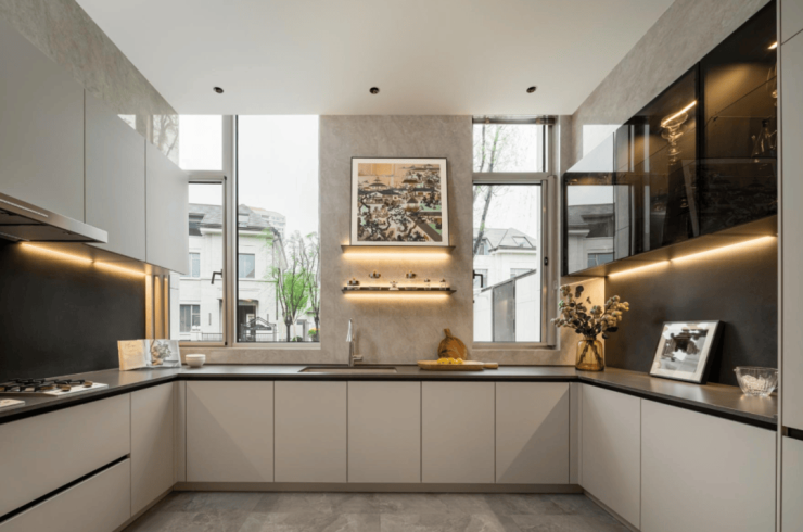厨房配备国际一线厨电,U型操作台动线合理,适配日常烹饪与高端宴请.