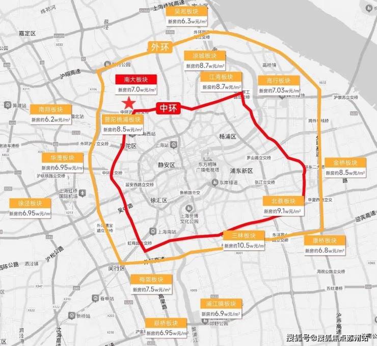 目前中环区域新房备案价参考,杨浦中环:9.8-10.5万元/㎡;普陀桃浦:8.1-8.5万元/㎡;虹桥开发区:9.6-10.2万元/㎡;前滩商务区:12.5-13.2万元/㎡。