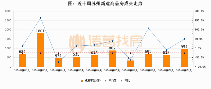 【苏州成交周报】第21周新房成交954套,二手房1312套,涨价房源1523套