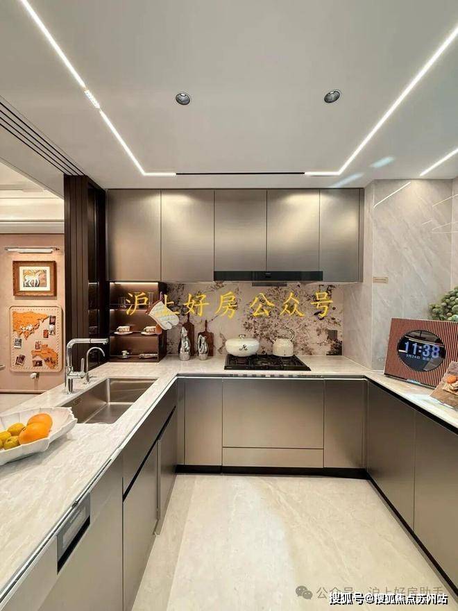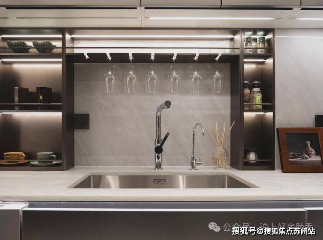 2、装标在线:开放式厨房配置嘉格纳三件套、铂浪高水槽及龙头也是标配,可谓是配置拉满!
