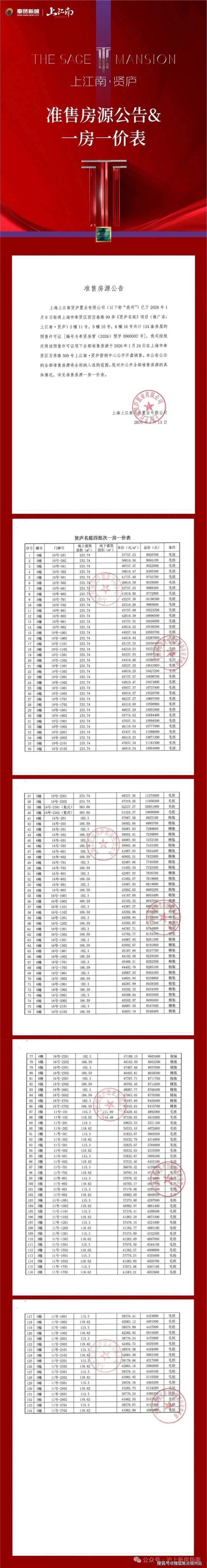 四批次加推134套建面约115-235㎡3/4房