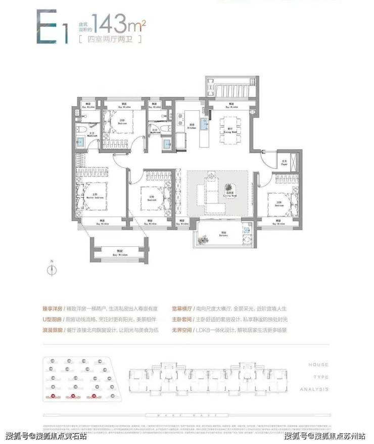 143平E1户型(四室两厅两卫)