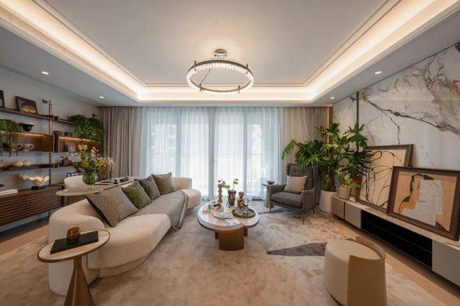 在景观打造方面,项目风格是新海派风格,特点是延续海派文化的典雅格调。整个社区采用“一环”“两轴”“三园”“六院” 的空间结构,展现现代海派的精致人居空间。
