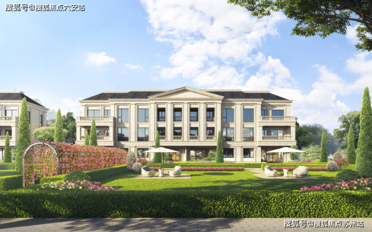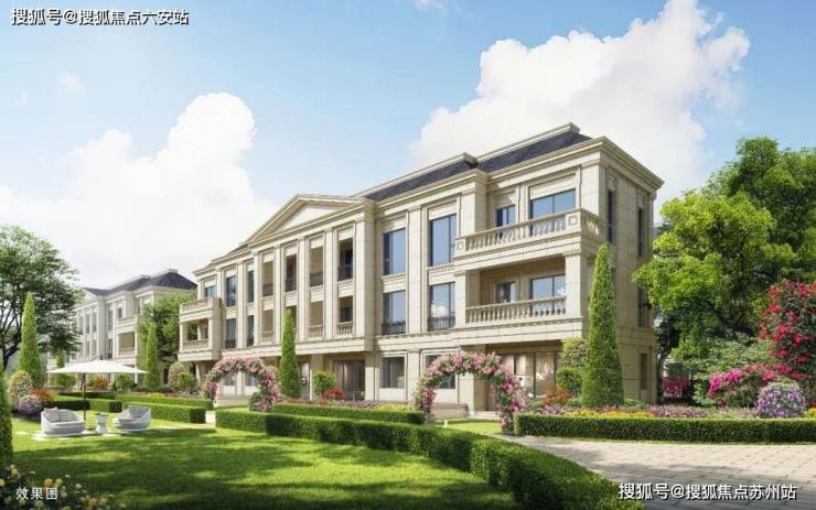 项目以法式古典主义为灵感,从建筑立面到庭院设计,每一处细节都浸透着对“仪式感”的追求:外立面采用经典法式石材+金属线脚,在光影流转中勾勒出优雅的立面轮廓;入户门廊以对称式设计搭配雕花装饰,让归家的每一步都充满仪式感;而最令人心动的,是每户标配的私家庭院——从亲地庭院到景观露台,从绿植花径到庭院水景,业主可根据需求自由规划,种几株月季、摆一套藤椅、置一顶遮阳伞,即可打造属于自己的“法式花园”。