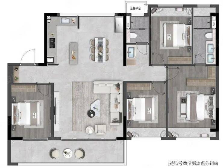 143㎡户型(4室2卫)特点: