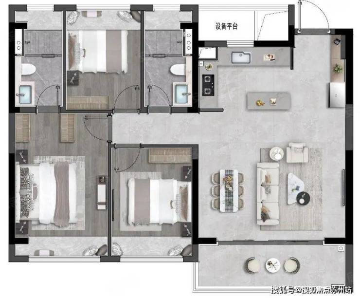 111㎡户型(3室2卫)特点: