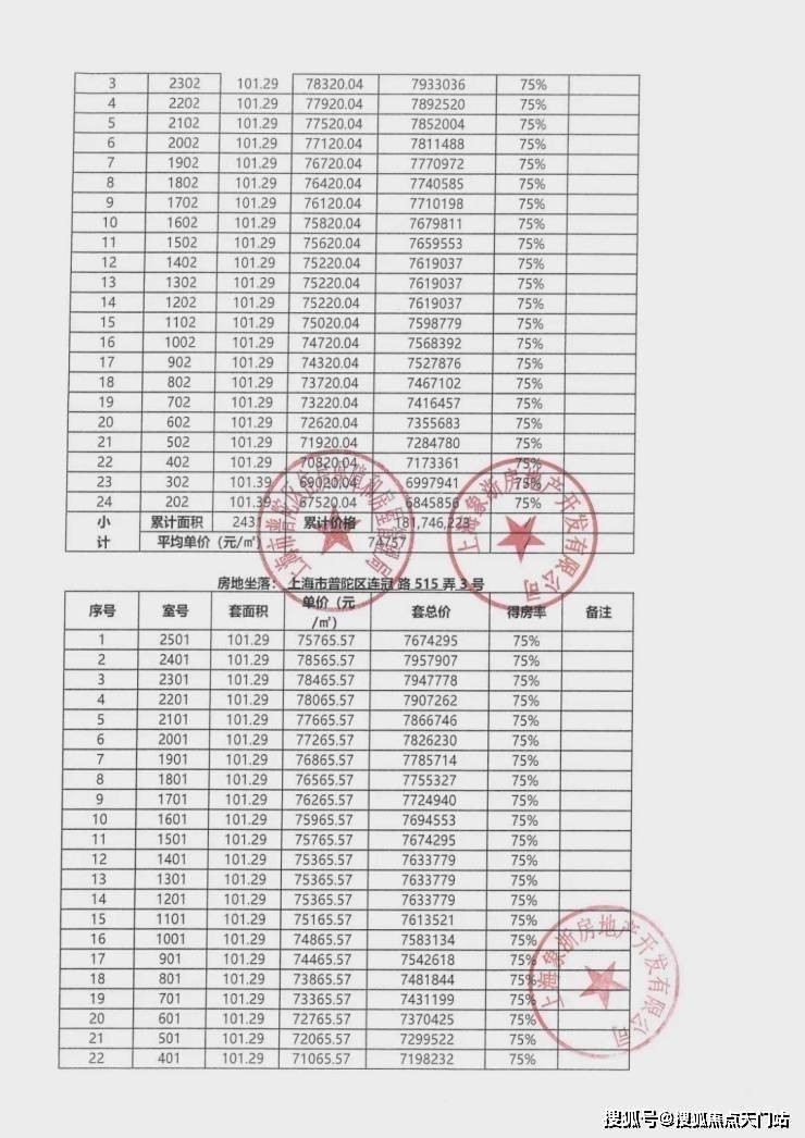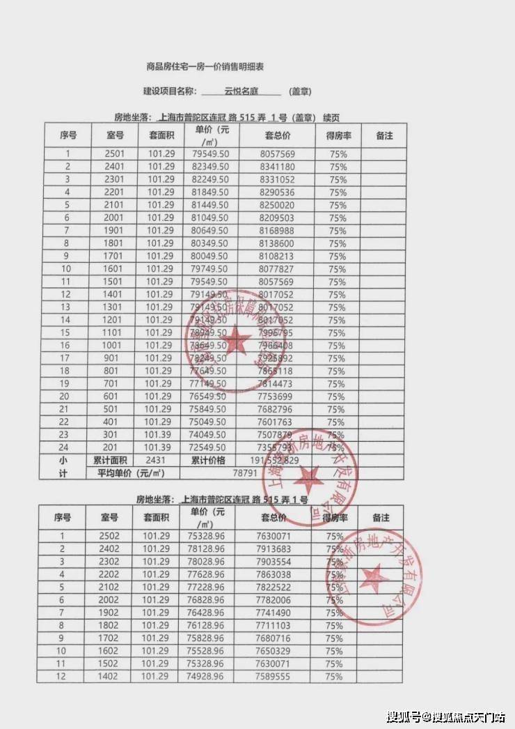 一房一价表