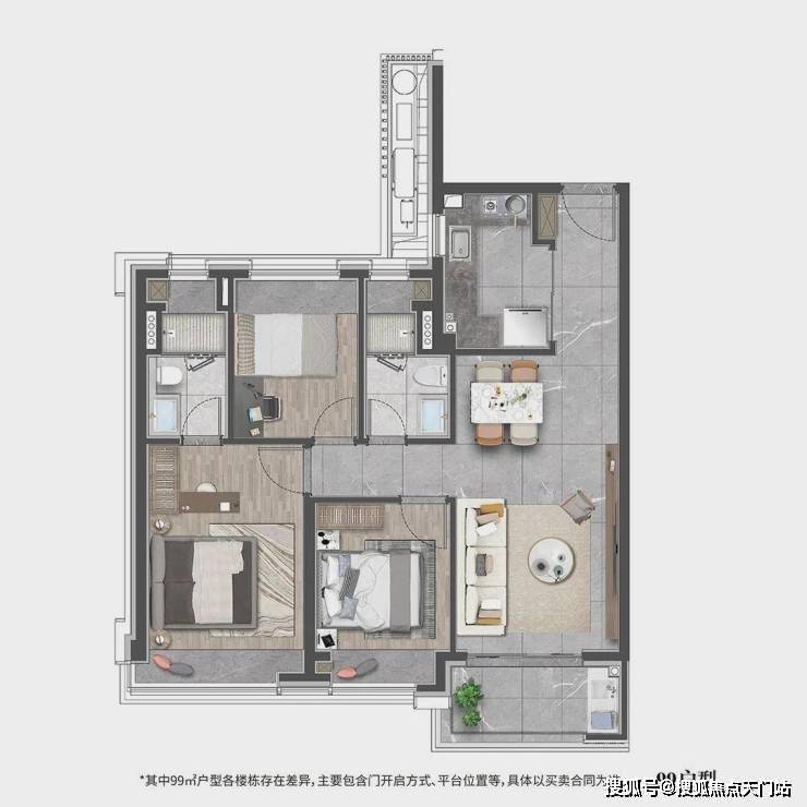 建面约99m²3房2厅2卫