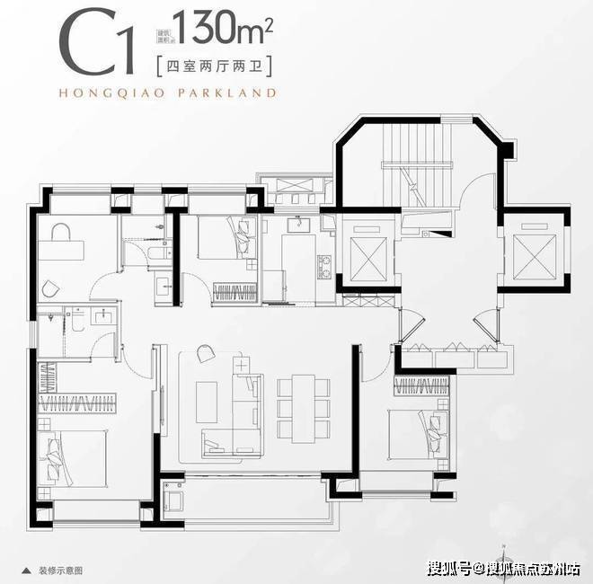 C1户型:130m2 4房2厅2卫