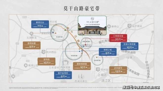 除了东侧的莫干山路外,西侧可直接上 运溪高架,后期可以直通杭州第三中心未来科技城,南侧紧邻良渚大道,往西便可抵达千年良渚文化村。