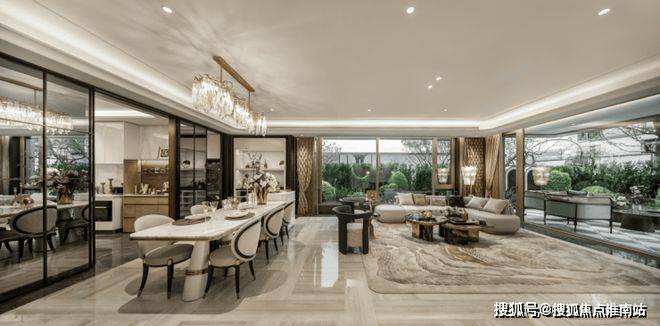 另外下沉式庭院的设计笔者很是喜欢,有飞云玉瀑、卧波平桥、老桩紫薇、百年朴树……漫步其中,能明显感受到 到处洋溢着豪宅的尊贵气息。