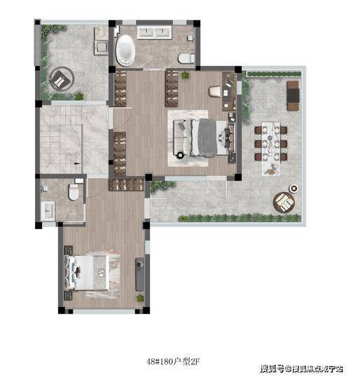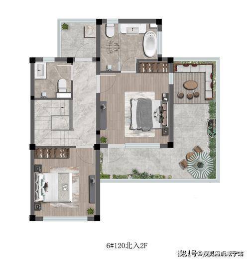 2楼打造了双南卧和双南露台,美好的阳光清风,揽入家中。与此同时,还有270度环景露台,这在同类型的产品中十分罕见。在露台上可以实现多维度的生活场景,喝茶看报,赏月赏星星,派对烧烤等等,十分惬意。
