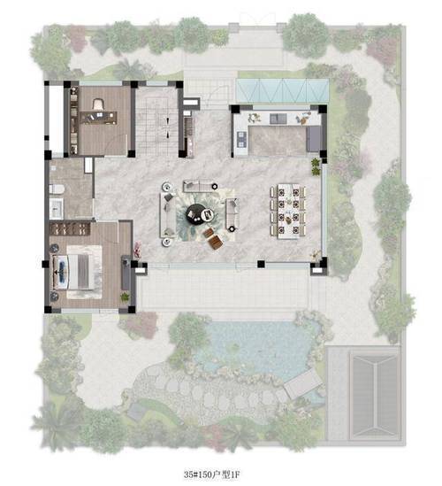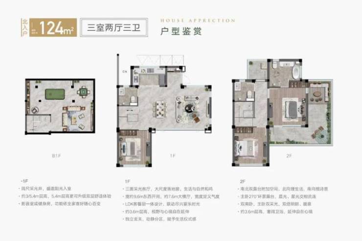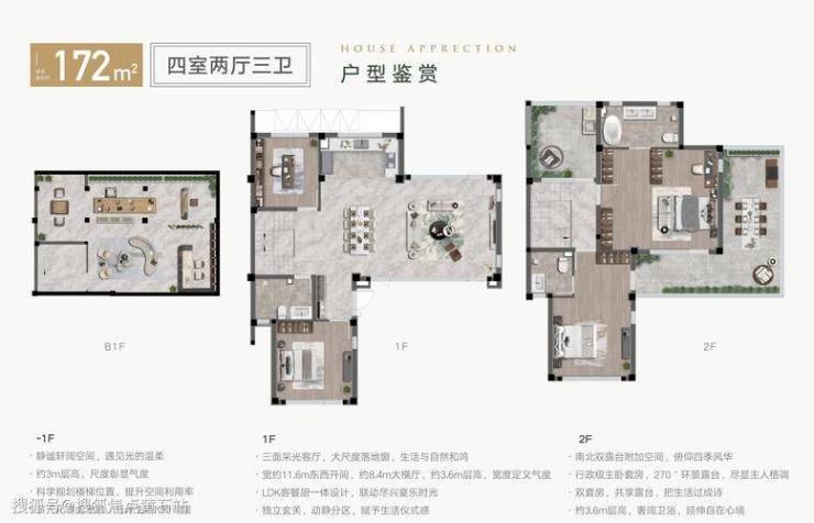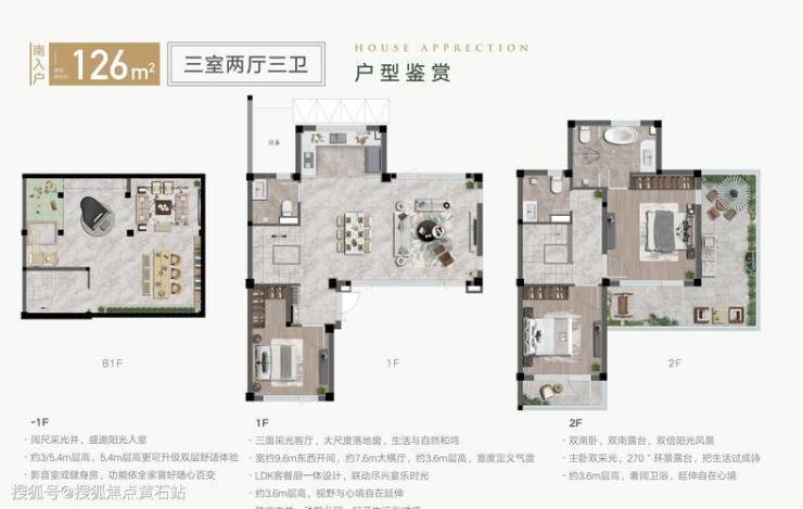 与此同时,居然做到了约3.6米的阔绰层高+270°转角露台+高度约3-5.4米、大尺度采光井的地下室。将视野景观进行全角度地拉伸的同时,更展示出真·别墅产品独有的气场。
