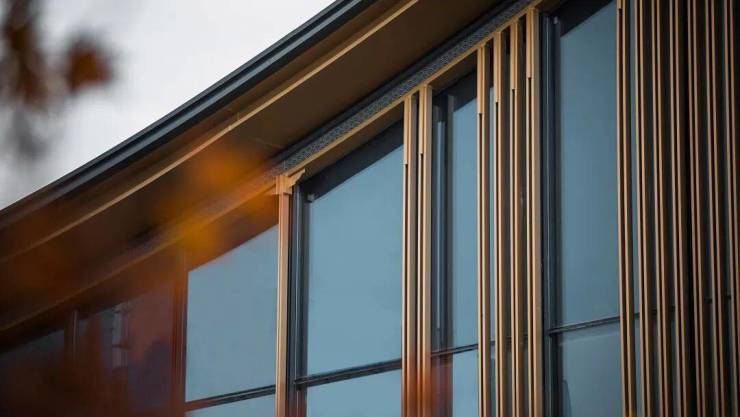 研习《营造法式》之精巧,提取宋朝代表性建筑中的中式重檐屋顶、木作构件元素,甄选铝板、石材、LOW-E玻璃、高档真石漆为主材,辅以金属格栅进行全新演绎,打造简雅秀逸的宋风公建化立面。