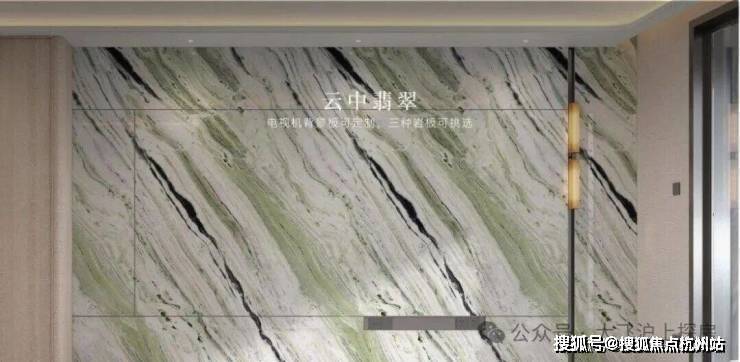充分考虑业主的个性化需求,在电视背景板提供了新潘多拉、云中翡翠、弗朗明戈金三种结晶釉面岩板选择,成本更高,施工难度也更大。