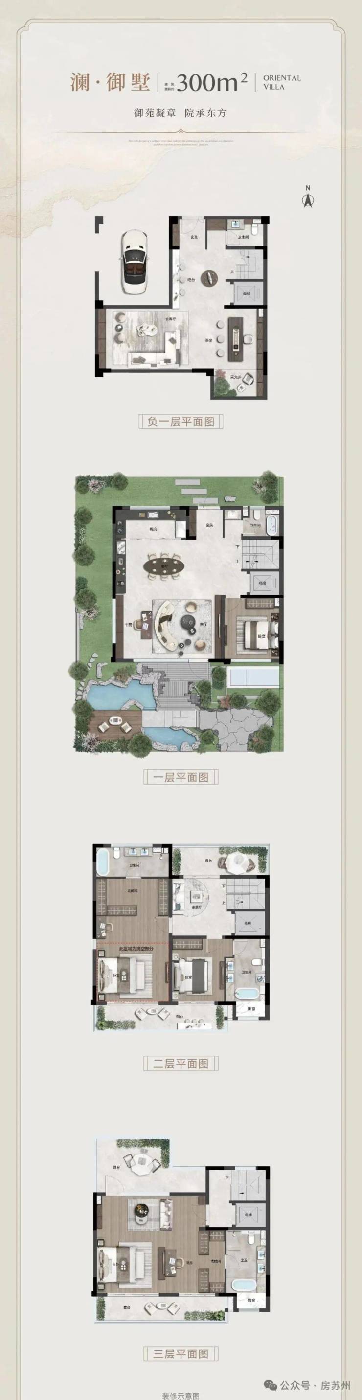 产品面积:联排建筑面积约270㎡-300㎡