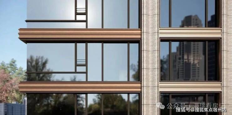 可视面都是古铜色金属铝板、米黄色铝板/石材、边套270°大转角飘窗,且从正面、侧面到背面,立面都保持精致统一,四面平权尽显高端质感。