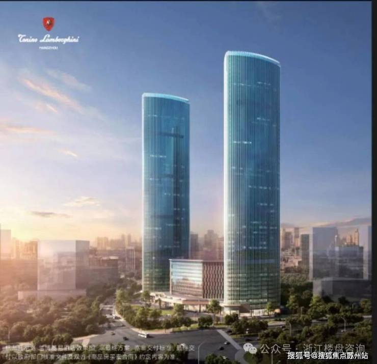 杭州托尼洛·兰博基尼酒店&私享总套Ⅱ期、约250米双塔建筑,钱塘天际线TOP2穹顶地标,可居可赏。