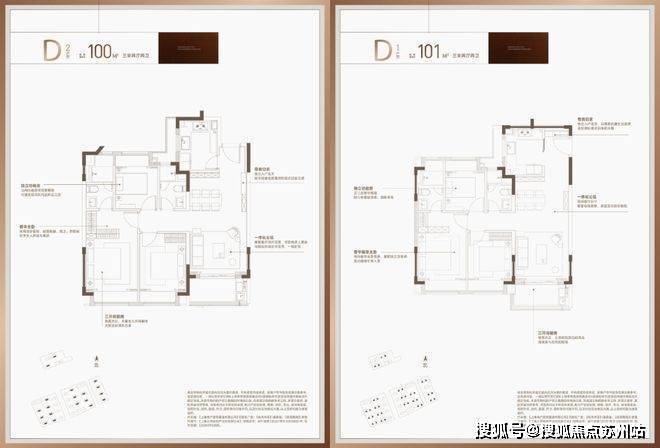 建面约100、101㎡3房2厅2卫。