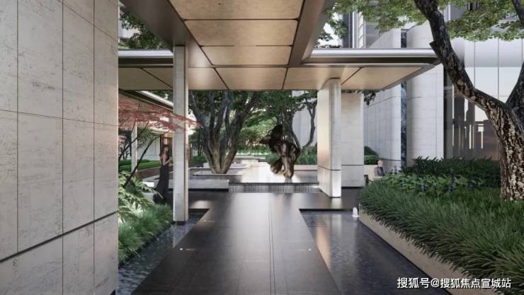 海上·清和玺将风雨连廊扩容为一个完整的归家体系,将整个社区以约500米全域连廊体系贯通,真正做到全住宅楼栋无风雨归家,让用户能重温“户外风雨连绵,廊下月华如水”的诗意瞬间。