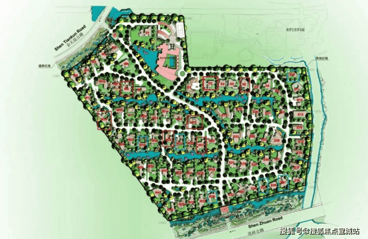 并且整个项目的设计师由一条景观主轴串联,中间在用环形布局,将每一幢别墅分布其中,胆大心细的让户户都临河,将资源天赋疯狂的展示到极致。