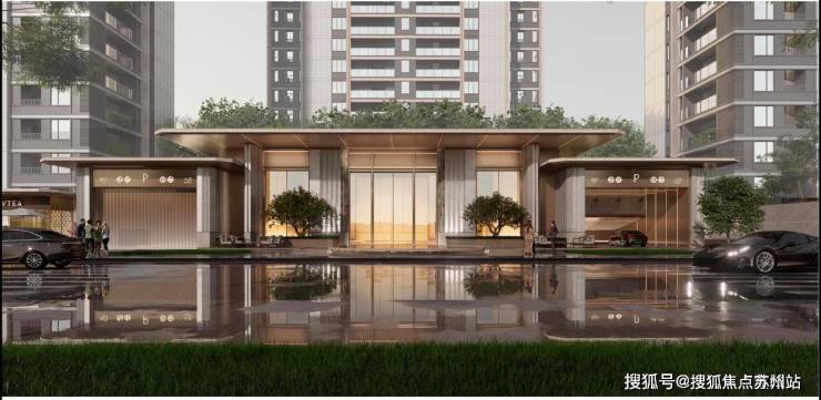 超配迎宾美学:约30m宽迎宾楼与挑高约5.5m酒店式迎宾大堂,以恢弘尺度定义归家高度。