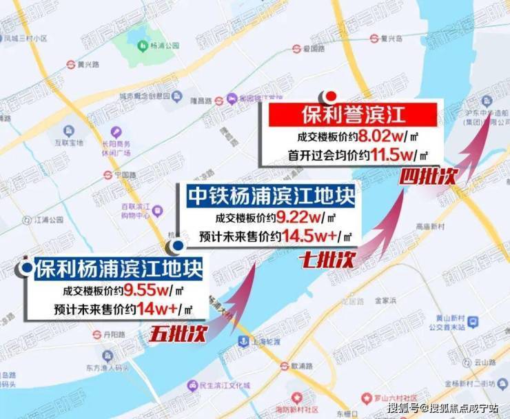 从最开始的 四批次地王的成交楼板价80199元/㎡(保利誉滨江)、到 五批次土拍刷新地王(成交楼板价95530元/㎡)、再到最近 七批次土拍杨浦滨江地块成交楼板价92225元/㎡, 1年时间土地价值直接三级连跳!整体溢价率均在26%以上,热度拉满!