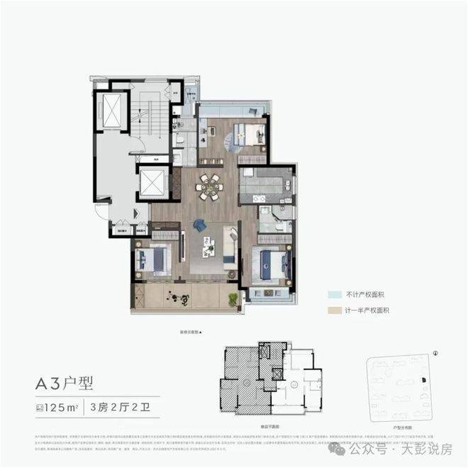 125平 三房两卫户型图