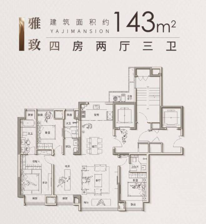 建面约 143-180㎡四室三卫双套房