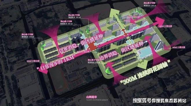 这些丰富的生活场景,则由两条景观轴线串联:一条是约300米的连续花园轴;一条是约600米的日常漫步街区。