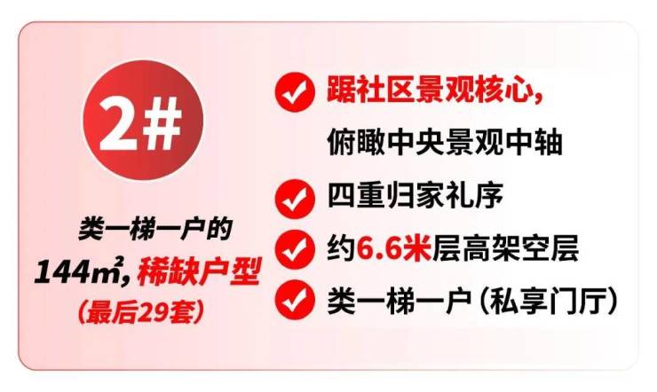 该栋约144㎡户型采用类一梯一户设计,享独立门厅体验,本次加推最后29套,席位珍贵。