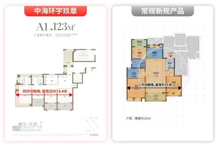 简单换算:同样建面约123㎡