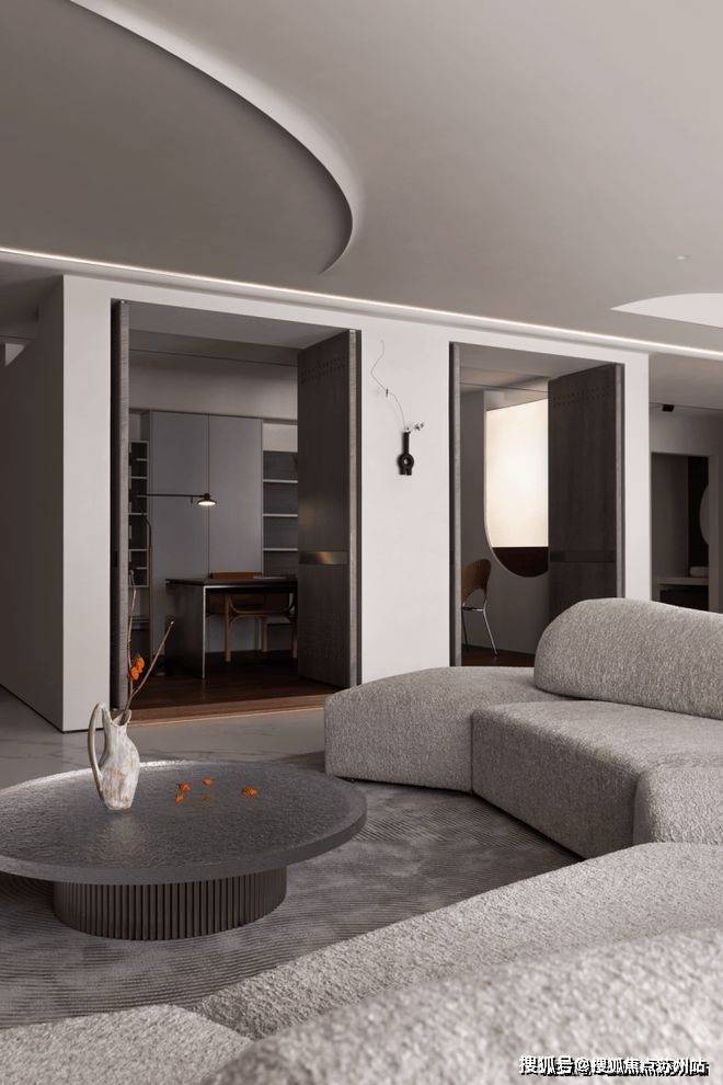 高级黑的纯粹静谧,营造出沉稳且个性的现代质感,松软的布艺家具、粗粝的陶器、永生的植物等简素物体,共同点缀着室内空间,创造出一种可感知、充满包容性的场域。
